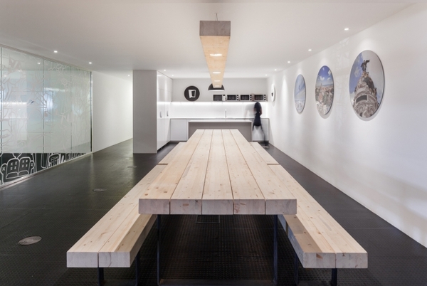 其辦公室裝修通過創(chuàng)造一個開放的工作空間,加強(qiáng)了公司各部門之間的交流。通過在開放空間之中的沉思場所的設(shè)計(jì)也達(dá)到了個人和集體的平衡。因此,小空間通過固定的元素,如圖書館和半開放會議室,或可移動的家具,如一些用于 Skype 聊天的構(gòu)筑物,得到了巧妙的利用。