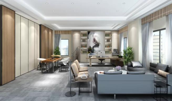 2、現(xiàn)代輕奢風辦公樓接待大廳裝修:整個辦公空間分為頂、墻、地三個部分,頂面以圓形和橢圓形疊級吊頂造型裝飾,輕松、休閑的燈光營造氛圍,在接待客人談生意時,裝修也能體現(xiàn)一家老板的品味與性格,還有該公司的實力,公共區(qū)域墻面采用高檔木飾面板裝飾,地面則是地毯滿鋪??偨?jīng)理辦公室裝修設(shè)計中重要的是超大的落地窗,總經(jīng)理工作上的壓力往往是常人難以感同身受的,站在三十多樓的高樓里,可以一覽城市風光,居高臨下俯視這座城市,眺望遠方舒緩內(nèi)心的壓抑。