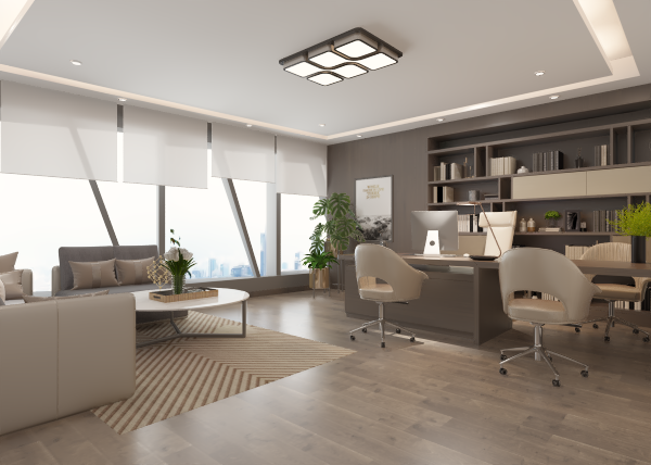 總經(jīng)理辦公室設(shè)計(jì)中顏色搭配很重要,比如:黃色、橙色、紅色、藍(lán)色等,多種顏色搭配在一起給人一種活潑跳躍的感覺(jué);選擇大面積白色給人一種明亮感;棕色給人穩(wěn)重成熟感。總經(jīng)理辦公室裝修很少使用色差大的顏色,一般都是灰色、棕色等作為主色調(diào)。黑與白的搭配空間、強(qiáng)烈的色彩反差或是全部淺色調(diào)處理的素雅搭配,這兩種截然不同的配色方案都可以滿(mǎn)足您時(shí)尚前沿的領(lǐng)導(dǎo)辦公室設(shè)計(jì)設(shè)計(jì)的需求。云杉、淺橡木、樺木、櫻桃木、梣木五種淡雅明快的款式搭配上中淺色系的家具,簡(jiǎn)約時(shí)尚的風(fēng)格就在不經(jīng)意間形成了。BOSS的辦公室裝修設(shè)計(jì)可以選用深色系。一個(gè)企業(yè)的領(lǐng)導(dǎo),應(yīng)該有著不同于員工的威嚴(yán),用深色系可以襯托出權(quán)威和莊重,再配以清新亮麗的顏色配飾作為點(diǎn)綴,莊重不顯沉悶,使得看起來(lái)不會(huì)很壓抑。