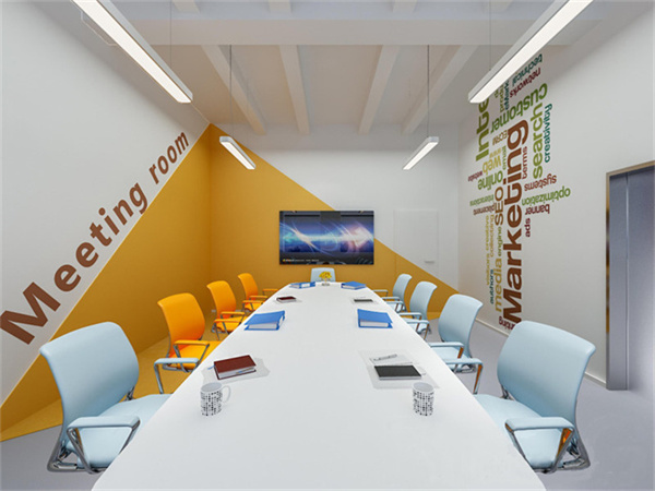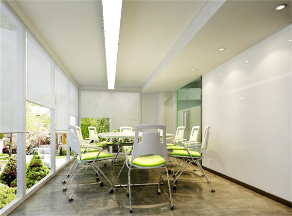1、職工辦公室設計:整齊地擺放著的辦公桌椅。每個座椅后都配備了文件柜,方便工作人員將資料整理、歸類、查找,也在一定程度上避免了辦公桌上的雜亂。這種整潔而井然有序的氛圍能夠使人鎮(zhèn)靜而愉悅。此外,左側(cè)的墻壁上掛著的裝飾畫,文件柜上擺放的陶器和錯落有致的窗簾都為這間辦公室增添了不少藝術氣息,而員工的座椅則選用了明亮的嫩綠,與窗外的樹木相映襯,清新而美麗。與的充滿功能性不同,會議室設計在一定程度上將干凈、清新的風格發(fā)揮到了**。整個會議室內(nèi)除了必備的桌椅沒有其他東西,一是因為空間本身容量有限,只有用淺色調(diào)進行辦公室才能讓人產(chǎn)生視覺上的擴大感;二是因為這間辦公室位于陽臺,窗外美景本身就能夠起到非常**的視覺效果,任何多余的配飾都是畫蛇添足。因此,座椅的嫩綠色成為這間會議室裝修的點睛之筆,在內(nèi)提亮了色調(diào),對外又與窗外景色相呼應。