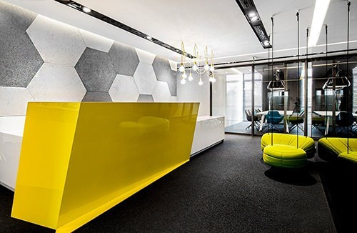 2、某互聯(lián)網(wǎng)公司辦公空間設計:在辦公室的不同區(qū)域里,有幾面用切割過的石材、木材、以及軟墊和玻璃裝飾成的墻壁,這顯得特有個性??傊@是一個對到訪者來說溫暖怡人,對員工來說能夠振奮身心的地方。這樣一個辦公場所既要像家一般舒適,又要滿足工作的實際需要,這的確不太容易。