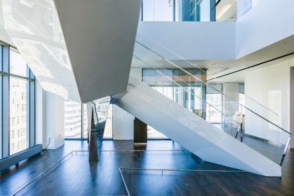 打造了一個(gè)靈動(dòng)、多元、開放共享的辦公空間,設(shè)計(jì)了一座戲劇化的中央樓梯將上下兩個(gè)樓層連接起來。沿窗放置了一些皮質(zhì)長凳,為周邊營造更開闊的動(dòng)線空間,也讓室外的自然光照**限度地灑入室內(nèi)深處。
