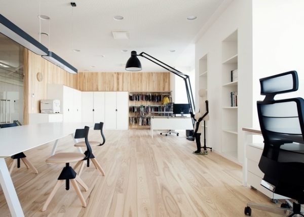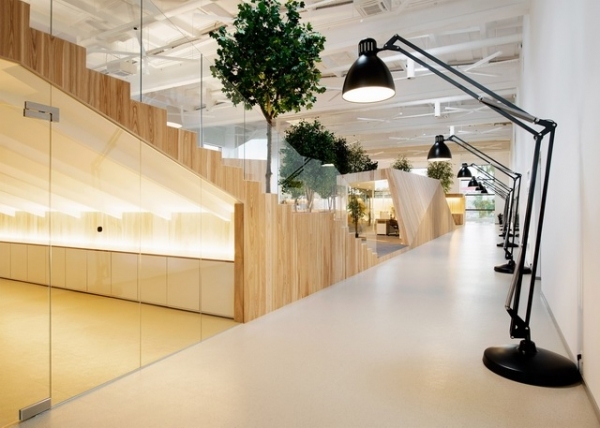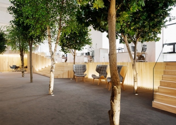 這是一個(gè)由廢棄工廠改建而成的兒童服裝公司辦公室裝修案例。設(shè)計(jì)師選擇原木作為*主要的設(shè)計(jì)元素制造出一些木屋,把它劃分為會(huì)議室、工作區(qū)、休息區(qū)等。辦公室里的公共區(qū)域還種植了五米高的樹木,在辦公室仿佛就置身森林,透過天窗和樹葉灑落的陽(yáng)光,讓人感受到一個(gè)綠意盎然、溫情脈脈的夏日。
