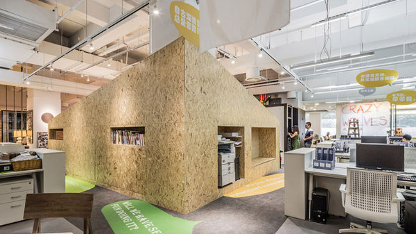 辦公區(qū)域的設(shè)計,設(shè)計師將奇思妙想融入空間,交流區(qū)域的背部被設(shè)計師開發(fā)出各式各樣的洞口,為的就是安置辦公設(shè)備,以此滿足辦公需求,真可謂是創(chuàng)意無限。