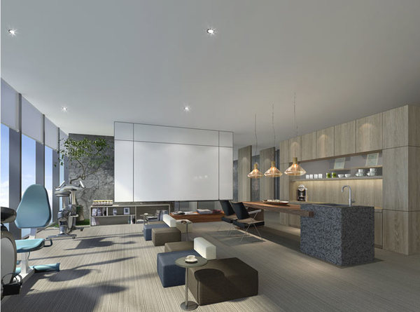 辦公區(qū)域的設(shè)計(jì):設(shè)計(jì)師在設(shè)計(jì)的時候,將其裕休息區(qū)域、交流區(qū)域融合在一起,設(shè)計(jì)師希望員工在精神壓力巨大的時候,可以坐在此地俯視外界的風(fēng)景,使自己的壓力得到釋放,俯視可以起到很好的轉(zhuǎn)化作用,同時員工之間的相互交流可以很好的加深員工之間的友誼。