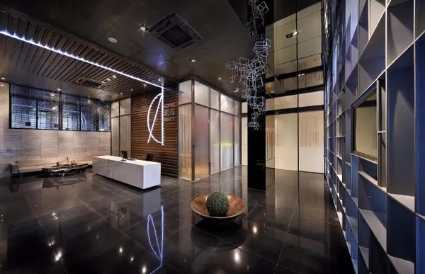 前臺(tái)對(duì)面的墻面處,擺放著一個(gè)傳統(tǒng)中式的柜體,黑色的大漆外表點(diǎn)綴著赤色的朱砂,體現(xiàn)出骨子里的我國(guó)精力以今世的審美視覺體現(xiàn)東方的空間氣質(zhì)。