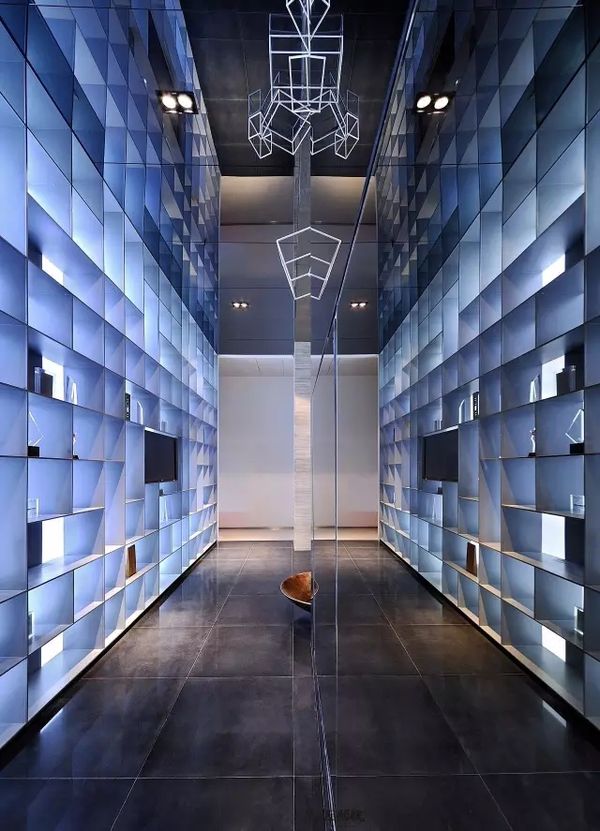 平面與立面的構(gòu)成在這個(gè)區(qū)域被潛移默化的表達(dá)出來,闡述著今世的解構(gòu)主義理念,實(shí)在、虛幻以及兩者的聯(lián)系。格子內(nèi)陳設(shè)著各項(xiàng)世界新的榮譽(yù)。在此基礎(chǔ)上,是非的界面在燈火的效果下煥宣布異樣的視覺感染力。