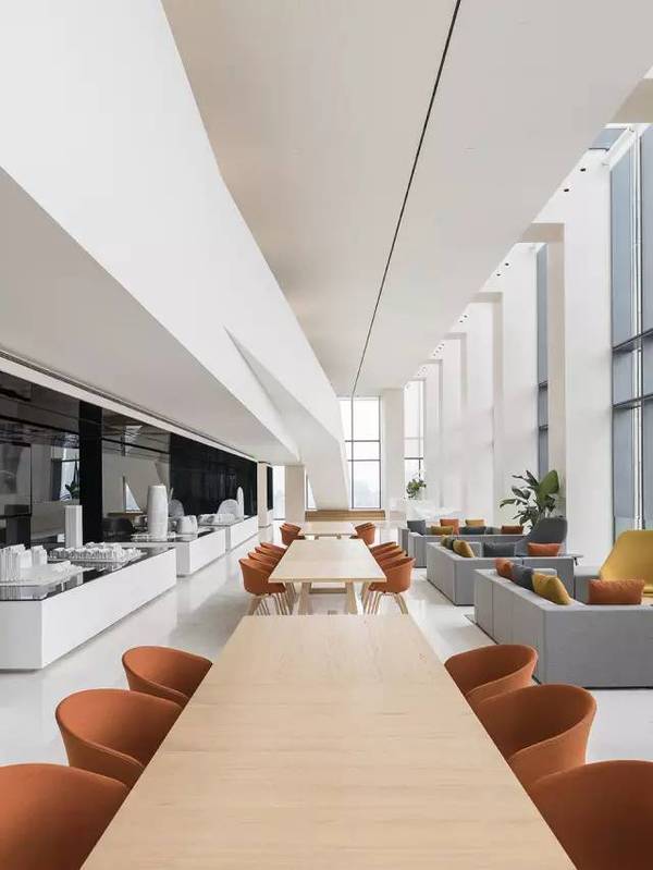 每天,人們都會(huì)在辦公室中呆很久,所以設(shè)計(jì)師希望創(chuàng)造一個(gè)舒適而又智慧的場(chǎng)所。設(shè)計(jì)師為天花上的燈加上了一層反射膜,這樣整個(gè)天花都能發(fā)出柔和的漫反射光。這是一個(gè)充滿創(chuàng)新而又微妙的設(shè)計(jì),連接室內(nèi)外。諸如用戶自己設(shè)計(jì)的地毯和藝術(shù)品這類的細(xì)節(jié),也顯示出外灘SOHO的空間精神,同時(shí)也給這個(gè)開(kāi)放大空間以豪華而又親密之感。