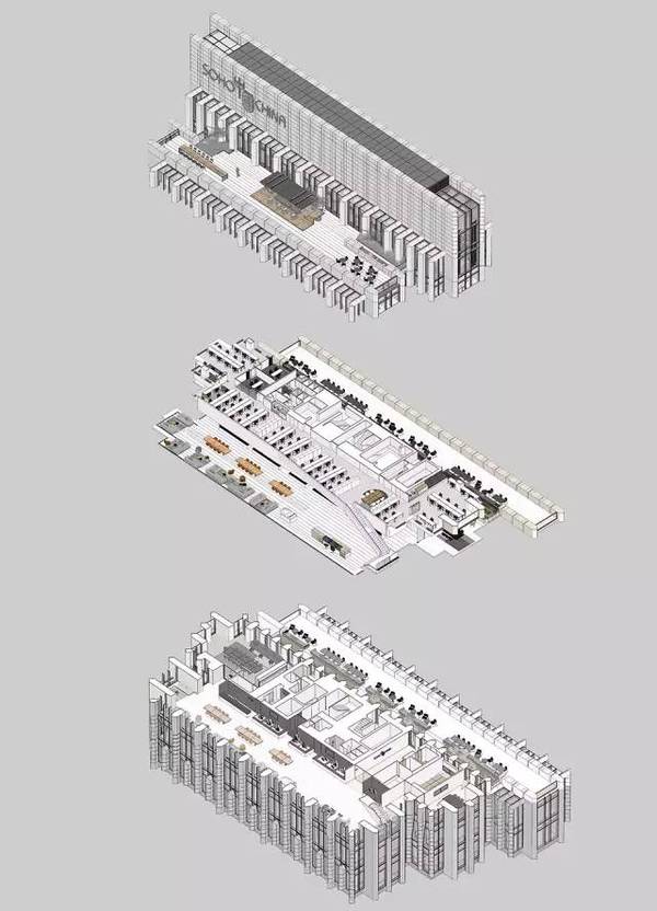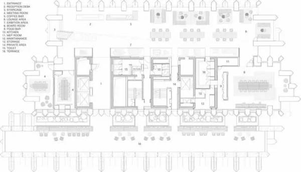 室內(nèi)和室外同時(shí)使用了簡(jiǎn)化的米黃色的石材,作為對(duì)于外灘老上海建筑的一種追溯,還使用仿佛能把人帶入未來(lái)的簡(jiǎn)潔而堅(jiān)硬的白色墻面。此外還有許多的小細(xì)節(jié):電梯廳附近45度的傾角;奶油色的石材使得空間看上去更加開(kāi)闊;明亮的光照,在上海的古老和現(xiàn)代之間尋找到平衡。
