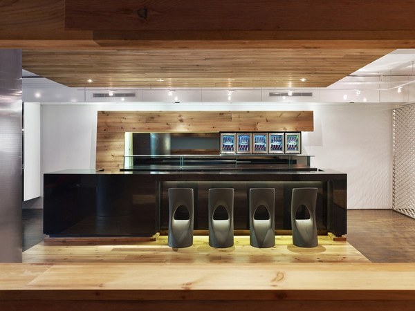 設(shè)計(jì)圍繞四個(gè)空間主題:休閑吧、線形開放式辦公位、羊毛氈飾面的空間結(jié)構(gòu)體、以及大會(huì)議室。場所不僅適用于辦公需求,還兼有多重功能,如舉辦各種派對(duì)、發(fā)布會(huì)、開幕式、以及招待會(huì)等,因此休閑吧成為空間的重中之重。