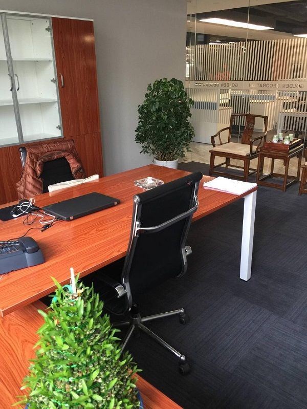 緊接著看到的是貴賓接待區(qū),這一部分的辦公室設計分為兩塊。一塊是中式雕花桌椅搭配屏風樣式的辦公室隔斷,另一部分則是現(xiàn)代風格的皮質包邊椅子搭配木質簡單書柜。這兩個部分的辦公室設計各具特色,但又在顏色上互相搭配,使得整個辦公室設計更加和諧。