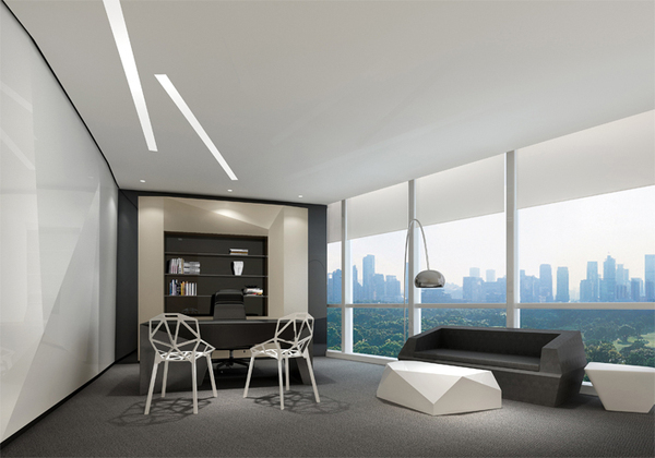 目前,在我國許多企業(yè)的辦公室,為了便于思想交流,加強民主管理,往往采用共享空間——開敞式設(shè)計,這種設(shè)計已成為現(xiàn)代新型辦公室的特征,它形成了現(xiàn)代辦公室新空間的概念。現(xiàn)代辦公室設(shè)計還注重于辦公環(huán)境的研究,將自然環(huán)境引入室內(nèi),綠化室內(nèi)外的環(huán)境,給辦公環(huán)境帶來一派生機,這也是現(xiàn)代辦公室的另一特征。