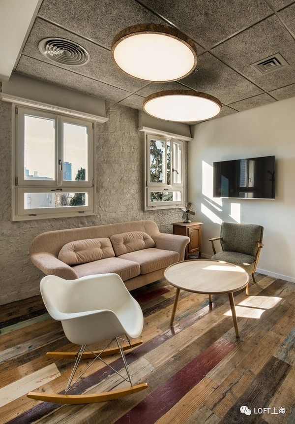 在線交易平臺服務(wù)公司Fiverr的新辦事處位于***特拉維夫一座歷史悠久的4層建筑物里,其室內(nèi)辦公空間由Setter Architects設(shè)計,為了保護這棟舊建筑,他們在此基礎(chǔ)上新蓋了三層樓。辦公室的設(shè)計靈感來源于老建筑的歷史感與國際大都市文化的碰撞,其室內(nèi)設(shè)計處處透露出新舊事物的對話:新鋪設(shè)的地板,回收的Beit Ha’ikarim時期的木制窗框,跳蚤市場淘來的家具與當代家具混合布置,暴露的硅酸鹽塊老墻和未處理的建筑材料。