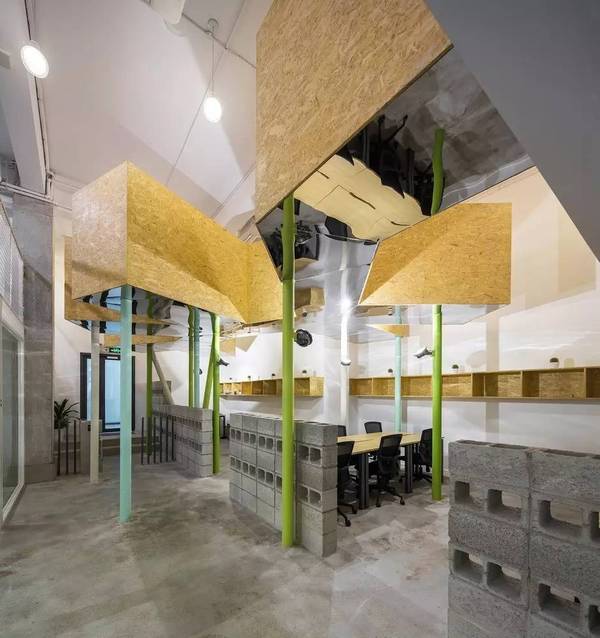 建筑**特點(diǎn)的是由鐵架搭建外包歐松板,并由一些鐵的支柱承托抬升到夾層的高度的“云座”休閑吧,其擺脫室內(nèi)透視主導(dǎo)的造型,以及隱藏結(jié)構(gòu)之后整體的漂浮感,為室內(nèi)創(chuàng)造了一個(gè)脫離工作取得休閑環(huán)境。