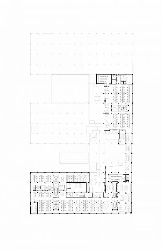 設(shè)計(jì)理念是尊重并突出現(xiàn)有結(jié)構(gòu),留下墻壁和天花板通過(guò)使用浮動(dòng)自由的形式-在列之間建立矩形框-在空間內(nèi)創(chuàng)造空間。