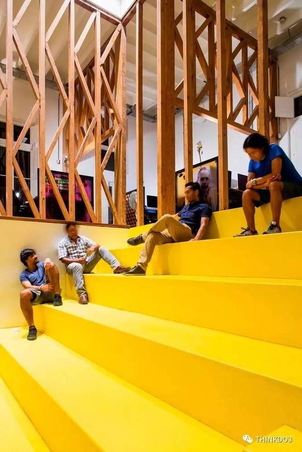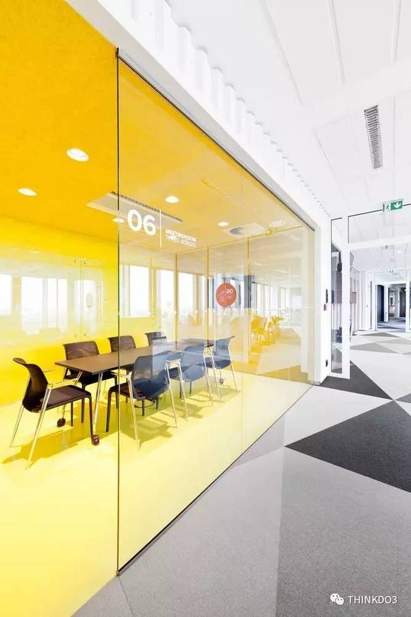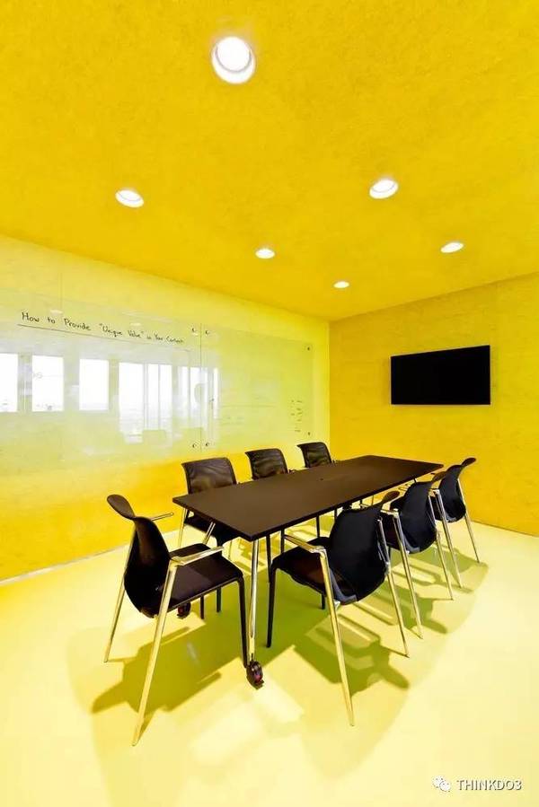 這些辦公室使用了大面積的黃色,看完整個心情都變得明亮起來了。。。