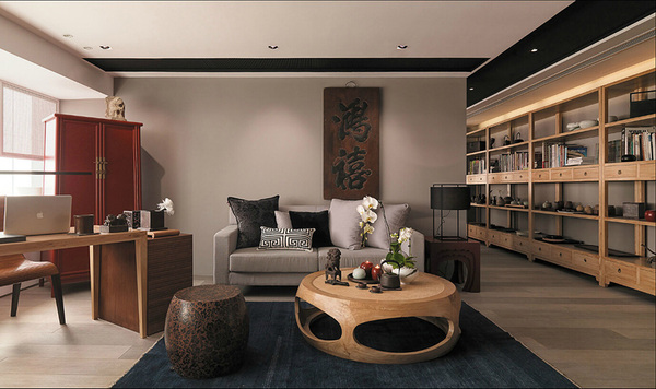 中式風(fēng)格辦公室設(shè)計(jì)講究對(duì)稱,常以陰陽(yáng)平衡概念調(diào)和室內(nèi)生態(tài),多選用天然的裝飾材料,并運(yùn)用“金、木、水、火、土”等元素的組合來(lái)營(yíng)造一種理性和寧?kù)o的環(huán)境。