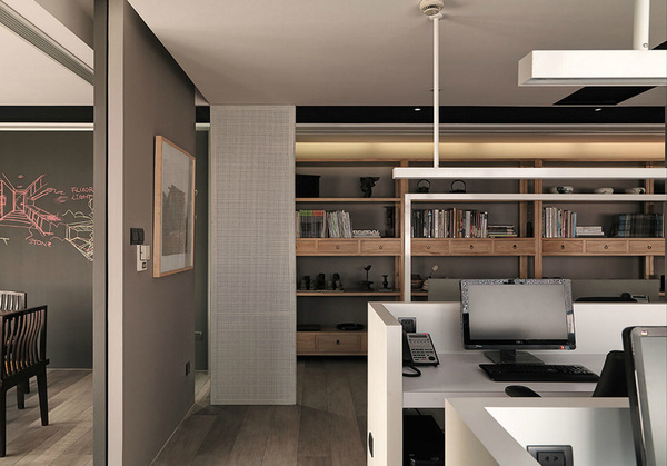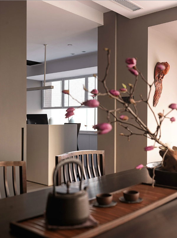 中式風(fēng)格辦公室設(shè)計(jì)非常講究空間的層次感,依據(jù)辦公室使用人數(shù)和私密程度的不同,需要做出分隔的功能性空間,一般采用“啞口”或簡(jiǎn)約化的“博古 架”來(lái)區(qū)分;在需要隔絕視線的地方,則使用中式的屏風(fēng)或窗欞,通過(guò)這種新的分隔方式,通常的辦公室就展現(xiàn)出中式家居的層次之美。