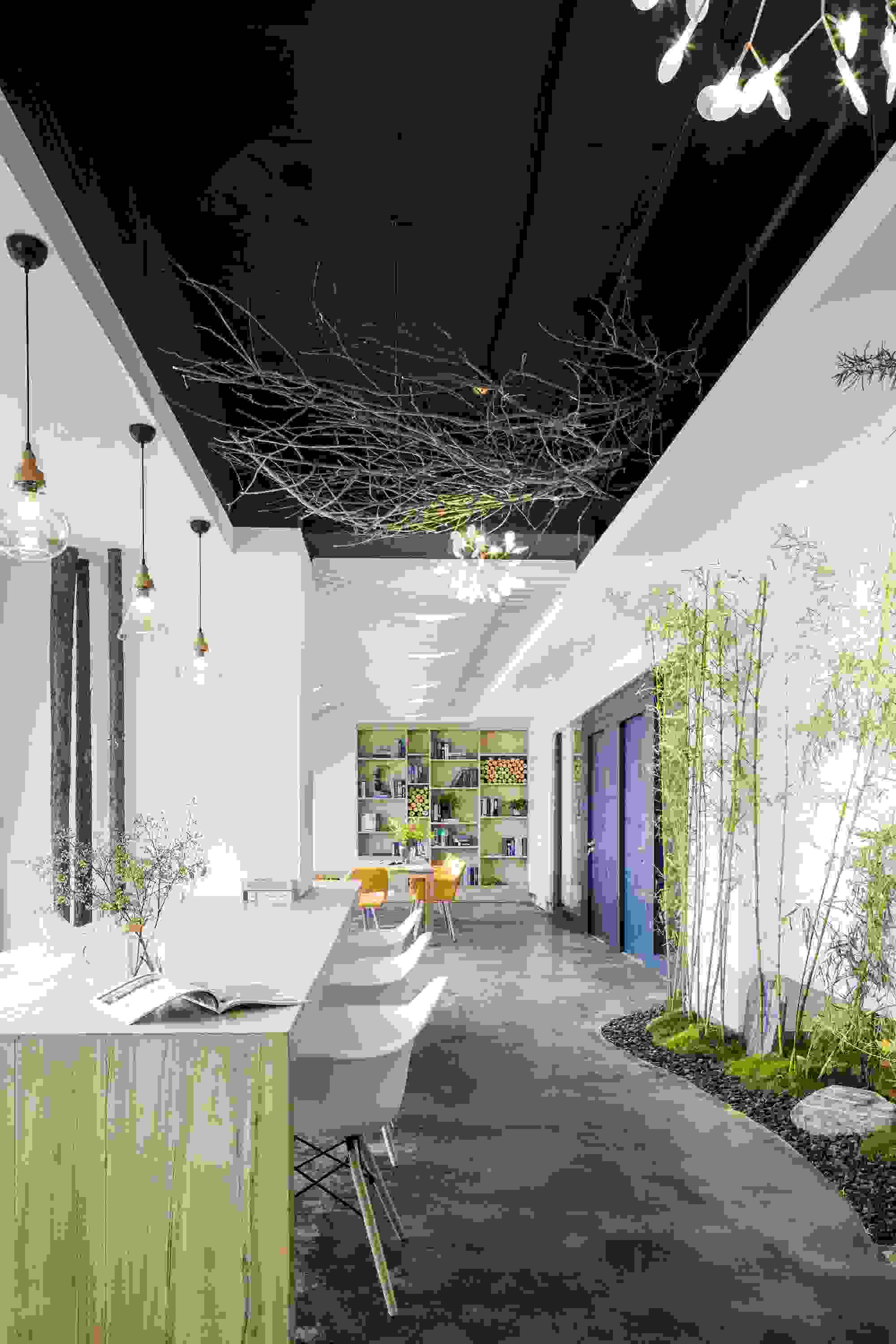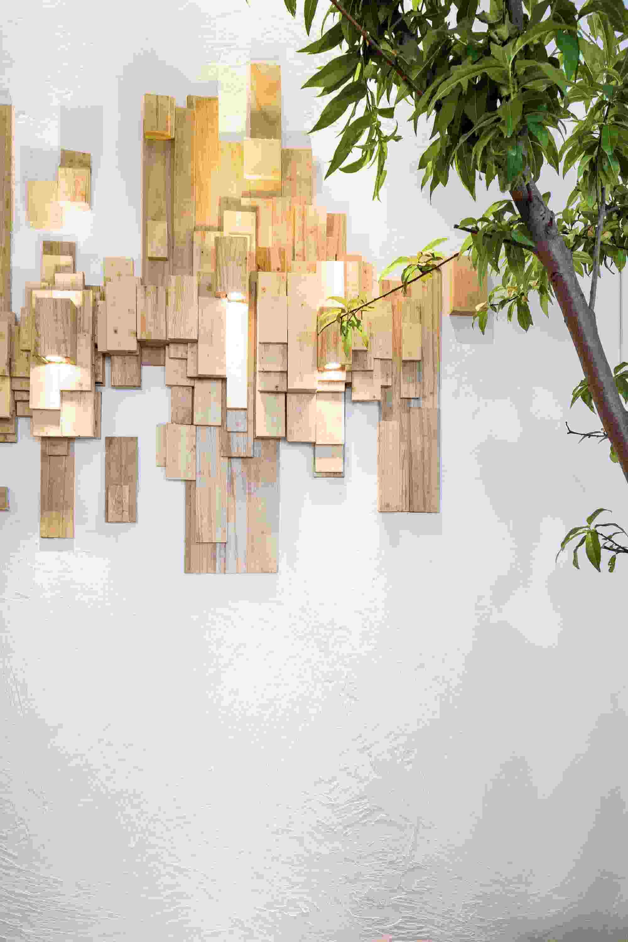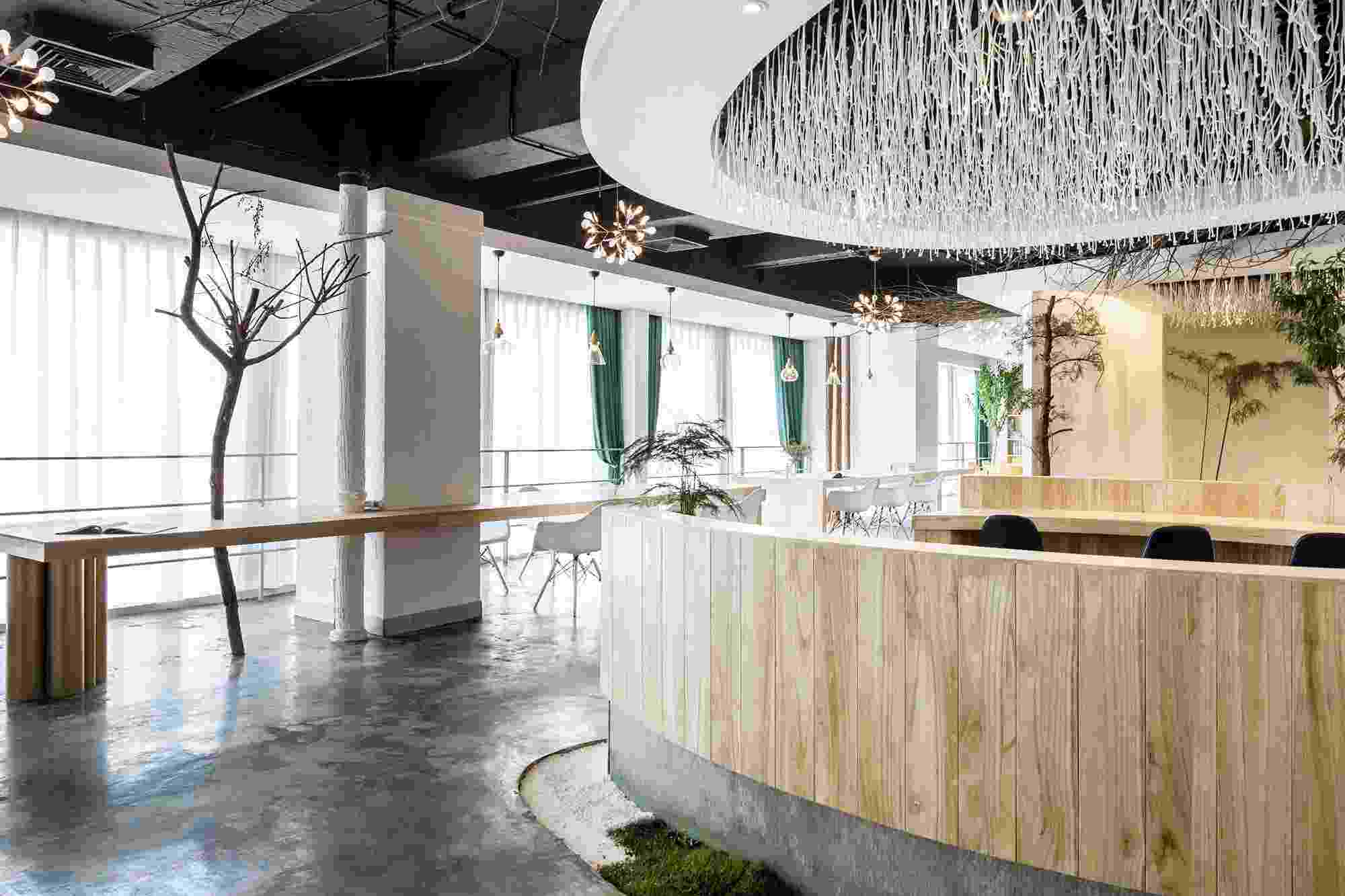 東方的美學(xué)向來(lái)是含蓄溫婉的,LOGO墻處的玻璃透景配合自然的竹石,隨著太陽(yáng)的變化,光影也在不斷的變化,猶如人生。在材料的運(yùn)用上選用的都是一些環(huán)保低碳的天然材料,如樹(shù)枝、石竹、枯木、天然原木板,地面則是采用了水泥自流平的方式。