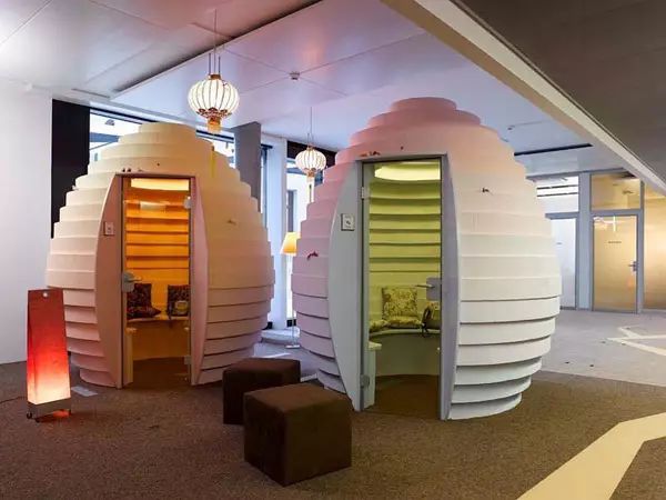 半開放式為6-10人一間,從供人隨時躺下的懶人椅到各式各樣的抱枕都體現(xiàn)了舒適第一的概念。