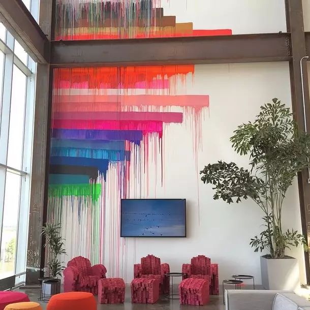 大部分墻面都被畫上了各種風格迥異的主題涂鴉,雖然Facebook委托了專業(yè)的藝術(shù)家進行創(chuàng)作,不過很多作品都是員工自己畫上去的。