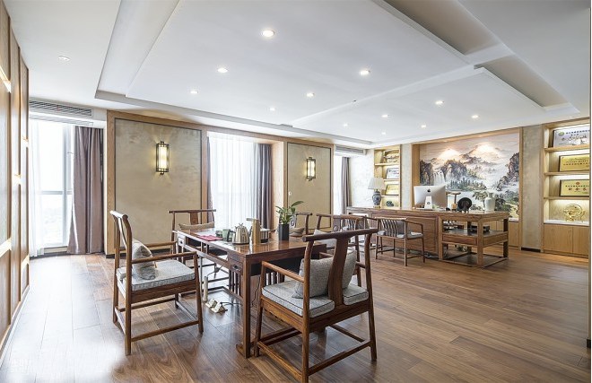 總經(jīng)理的辦公室裝飾也要與辦公室的整體裝修風(fēng)格相一致,不應(yīng)該有風(fēng)格的多樣性,這只會給人一種無序的建筑感覺,影響整個辦公室的美感。簡單的中式設(shè)計或現(xiàn)代風(fēng)格的穩(wěn)健設(shè)計,摒棄了對風(fēng)格外觀的追求,簡化了其復(fù)雜性,并將其作為設(shè)計的核心來表達(dá)和接受。設(shè)計師在情感、文化、氣質(zhì)、身份層面上尋找一種接觸、溝通、協(xié)調(diào)的方式,以表達(dá)人們對新辦公室的精神渴望。