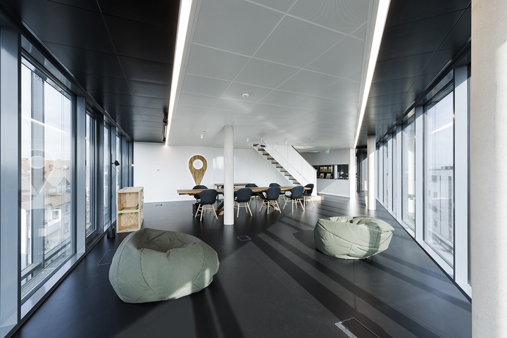 2、國(guó)外400平方米簡(jiǎn)約時(shí)尚辦公室設(shè)計(jì):精心選擇的材料——實(shí)木桌子、天然橡膠地板、集裝箱和用綁帶固定在廚房天花板上的松木,這些元素再加上蠟的金屬墻面,形成微妙的對(duì)比。有過多次海上經(jīng)歷大型的集裝性成為辦公室的亮點(diǎn),在辦公室施工階段,集裝箱是用起重機(jī)吊進(jìn)室內(nèi),集裝箱內(nèi)部是一間會(huì)議室。開放式的整體概念清楚的展示了在這兒工作的雇員,一家年輕、有活力且有宏大目標(biāo)的公司——保護(hù)地球資源,不浪費(fèi),用長(zhǎng)期發(fā)展的眼光采用綜合的方式。