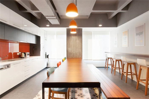 獨(dú)特風(fēng)格的服飾貿(mào)易辦公室裝修:服飾公司辦公室裝修的前廳的裝修中,設(shè)計師有效地利用了它那狹小的空間,通過改變天花和前臺辦公臺的形狀,加入儒雅的吊燈來裝飾,讓我們看起來空間雖小,但五臟俱全。另外,設(shè)計師加入了向往自由、開放、激情等概念化的創(chuàng)意設(shè)計理念,這樣的辦公室裝修看起來才顯得更加有特色。?