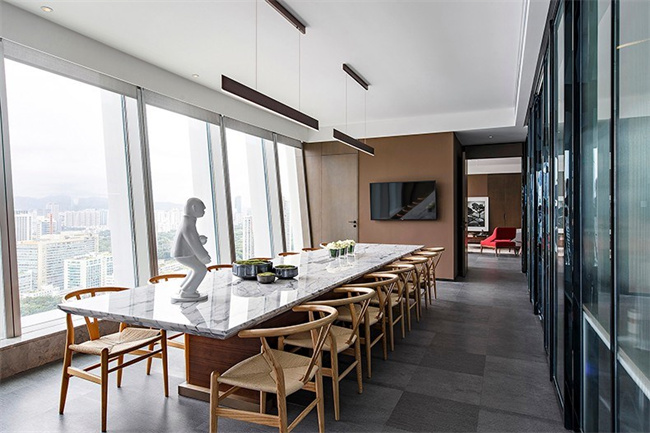 2、550平米現(xiàn)代簡約網(wǎng)絡(luò)科技公司辦公室設(shè)計:設(shè)計師仍然希望保留建筑物本身的痕跡和紋理,包括水磨石地板上的裂縫和水泥柱上的洞。這些骷髏也成為空間的一部分,到處都是新舊碰撞。打破基礎(chǔ)并將其結(jié)合起來,創(chuàng)造一個新的空間。辦公室裝修設(shè)計的整體色調(diào)偏向淺色,增加了一些綠色植物和其他顏色的休閑椅,豐富了空間的分層和視覺體驗。關(guān)鍵是要匹配玻璃隔斷,使整個辦公空間更加透明,感覺和亮度。?對于辦公家具和地毯窗簾等物品,設(shè)計師力求統(tǒng)一顏色,以確保色彩純度和亮度的差異,突出色彩層次,放棄單一顏色,使空間中的其他顏色傾向于這樣的辦公空間的整體色調(diào)將產(chǎn)生多維且相互關(guān)聯(lián)的色彩效果。?