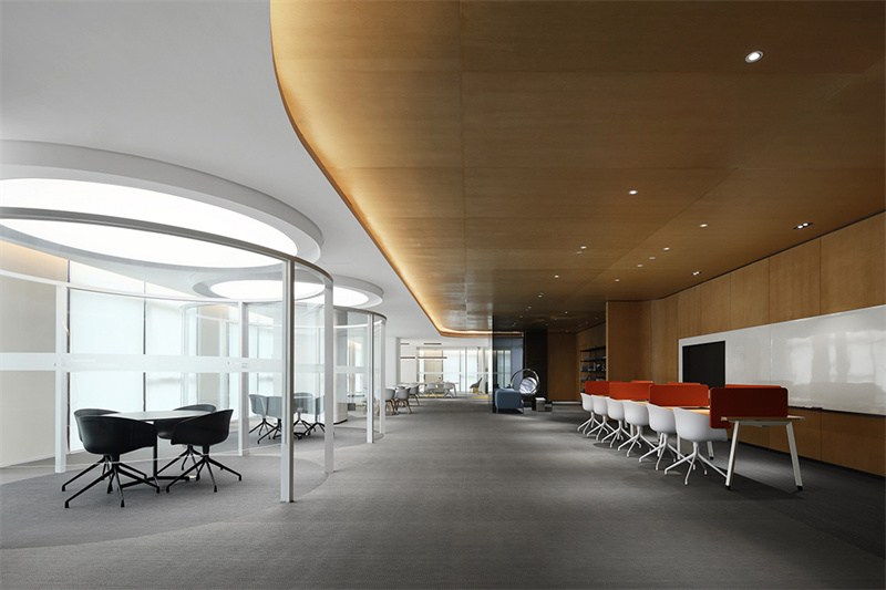 然后,重要的一點(diǎn)私密性,因?yàn)槌S泄ぷ魃贤鶃?lái)的客戶,所以與來(lái)訪客戶談話的隱私性就需要做到位。天花的隔音板,墻面的隔音棉、隔音玻璃,地面地毯或木地板都能打造一個(gè)安靜、私密性的強(qiáng)的洽談環(huán)境,給業(yè)主與客戶可以進(jìn)行深入的交流,說(shuō)出內(nèi)心真實(shí)的想法。好的辦公室裝飾不僅僅靠其中一兩點(diǎn)就可以打造的,需要通過(guò)硬裝與軟裝相配合,在滿足辦公功能需求的同時(shí),又巧妙地表達(dá)企業(yè)文化。