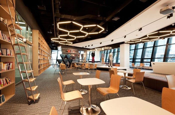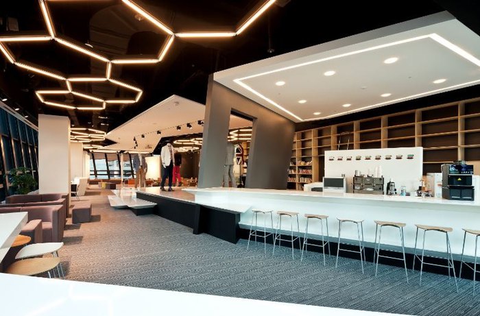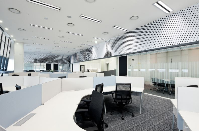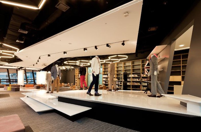? ? 德韋爾是一個(gè)工業(yè)材料集團(tuán)公司,化工和時(shí)尚。工作人員可以使用粉末室進(jìn)行頭腦風(fēng)暴和集中工作。辦公空間有不同的主題,根據(jù)他們所工作的品牌。在色彩和高對(duì)比度較強(qiáng)的線(xiàn)性設(shè)計(jì),前衛(wèi)的品牌形象是顯而易見(jiàn)的。